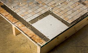 - לחות: כפי שצוין קודם לכן, לא ניתן להשתמש במסטיק אריחים באזורי לחות גבוהה, כמו רצפות מקלחת, בריכות שחייה או אמבטיות. ניתן להשתמש במסטיקים על מקלחות ואמבטיות, כיוון שאלה מדורגים כשטחי לחות "לסירוגין". ניתן להשתמש ב- Thinset בכל האזורים הללו, כולל מחבתות למקלחת.