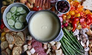 כשמדובר באוכל, דלג על הארוחה ולך עם מתאבנים. אם אתם באמת רוצים ארוחה, בקשו מהאורחים שלכם להביא את התוספות. על ידי הדגשת האוכל עם מפה פריכה ומגשים נאים המוקפים בכמה נרות, תוכלו לדלג גם על המרכז היקר. תנו לאוכל להיות הקישוט העיקרי לשולחן.
