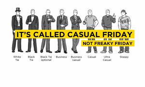 - יום שישי מזדמן: מה שתלבש למשרד ביום שישי מזדמן שונה ממה שאתה לובש למשחק כדורגל בערב שישי בבית הספר התיכון המקומי. זכור שכשאתה הולך לעבודה, אתה עלול להיתקל במפקחים שקובעים את עתידך עם החברה.