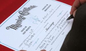 הערה: המידע במאמר זה היה מדויק עם פרסומו. חשוב שתאמת את כל המידע מול משרד רישיון הנישואין המקומי שלך או פקיד המחוז לפני שתעשה תכניות חתונה או נסיעות. במקרה של ספק, פנה לייעוץ משפטי.