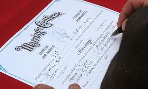 לאחר נישואין של זוג, רישיון הנישואין חתום על ידי החתן והכלה ועדיהם. לאחר מכן, מנהל חתונתם מגיש את רישיון הנישואין לרשות השלטון המקומי שהוציאה את הרישיון. בתהליך רישום זה הנישואין הופכים לחלק מהתיק הציבורי. לאחר מכן מונפקת תעודת נישואין ונשלחת בדואר אל הזוג הטרי. התהליך בדרך כלל לוקח כמה שבועות.