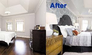 הנה חדר שינה בהיר ועליז, אך שומר על הכל תחת שליטה על ידי היצמדות עם לוח צבעים ודפוסים תואמים בקנה מידה. מה שבאמת מייחד את החדר הזה, הוא ספסל הפולקה בשחור-לבן קצת רטרו / קצת עכשווי עם רגלי לוסיט ברורות, ומתקן התקרה העגול והזהוב למחצה. שני המבטאים הללו לבדם יכולים לתבל כל סגנון או צבע של חדר השינה.
