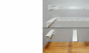 - חברו שני סוגרי L לתחתית MDF החתוך, אחד בכל קצהו. צרף אותם בצד הישר, כשצורת ה- L הבלתי צמודה תלויה למטה. אתה תחבר אותם לקיר מאוחר יותר.