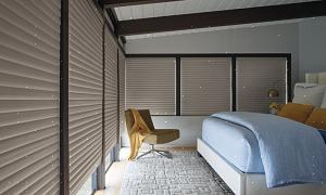 - אוספים את לוחות הבד המותקנים ומחברים אותם מאחורי המעצורים. משוך בחלק העליון של הפאנלים, ממש מעל המעכורים, עד שאתה אוהב את הווילונות.