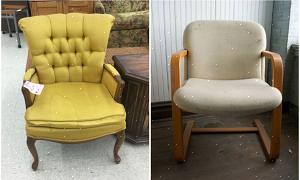 גב הסולם החזק והנוח הזה מושלם לשולחן העבודה בספריה שלי. הקווים פשוטים, אך לזרועות עקומה לא צפויה. למרות שהגימור כמעט מושלם, בד המושב משעמם ומלוכלך.
