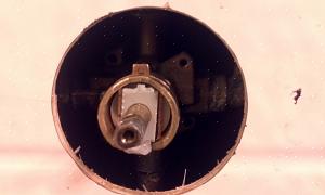 - בעזרת מברג שטוח קטן, הושטו מטה והסירו את מושבי שסתום הגומי והקפיצים מהנמלים בתחתית גוף הברז.