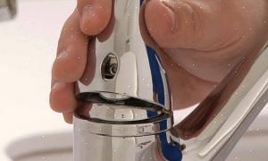 - אם הברז דולף מבסיס זרבובית הברז, השתמש במפתח הברגים המיוחד כדי להדק את צווארון הנעילה על ידי סיבובו בכיוון השעון. אם הדליפה נעצרת, אתה יכול פשוט להחזיר את הידית לברז. אם הדליפה נמשכת או אם הברז דולף מהזרבוב, המשך בשלבים הבאים.