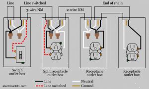 עבור רוב היישומים במעגל, כבל ה- NM הנפוץ מתואר ככבל "דו-חוט" או "תלת-חוטים". ייעוד זה מתייחס למספר מוליכי החוט המבודדים שהכבל מכיל. הייעוד מטעה מעט, עם זאת, מכיוון שגם כבלים דו-חוטיים וגם תלת-חוטים מכילים חוט הארקה נוסף של נחושת חשופה. לפיכך, שני כבלים מחוטים מתוארים לעתים קרובות כ"דו-חוטים עם קרקע ", בעוד שכבל תיל-חוט נמכר כ"תלת-חוט עם קרקע". בכבל דו-חוטי, מוליך מבודד אחד כולל בידוד שחור (בדרך כלל החוט החם), והמוליך השני בעל בידוד לבן (בדרך כלל משמש כחוט ניטרלי). בכבל תלת חוטי יש חוט ניטרלי לבן אחד, בתוספת חוט שחור ואדום.