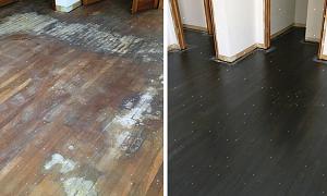 צמיחת עובש מתחת לצבע על רצפה מצוירת היא סוגיה מסובכת יותר. המקור היחיד שלך בשלב זה הוא להסיר את הגימור מכיוון שצבע יוצר איטום על הרצפה הלוכד מים בעץ שמתחת. לאחר גירוד הצבע, קרצפו את העץ בעזרת חומר ניקוי שוחקים, כמו Barkeeper's Friend, או השתמשו בתמיסת מים TSP בתוספת כוס אקונומיקה כביסה רגילה לכל ליטר מים. ייבש את הרצפה כמתואר לעיל לאחר הניקוי.
